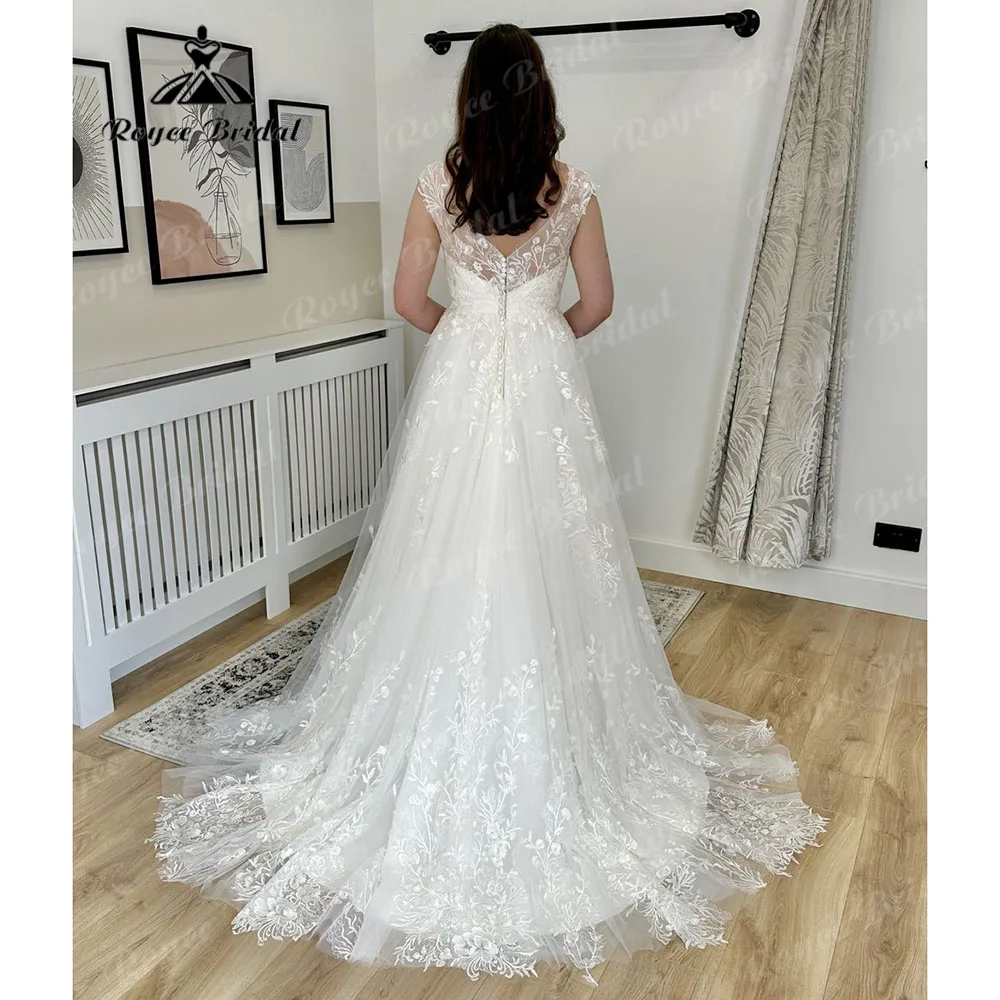 Robe Femme Full Lace V Neck Wedding Dress with Cap Sleeve 2024 Off White Women Bridal Gown Custom Made Vestidos Para Boda Mariag